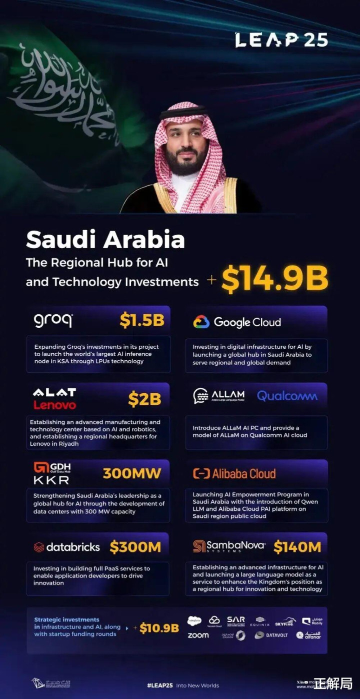 今年2月在沙特利雅得举办的LEAP 2025会议上,知名科技公司宣布投资149亿美元。